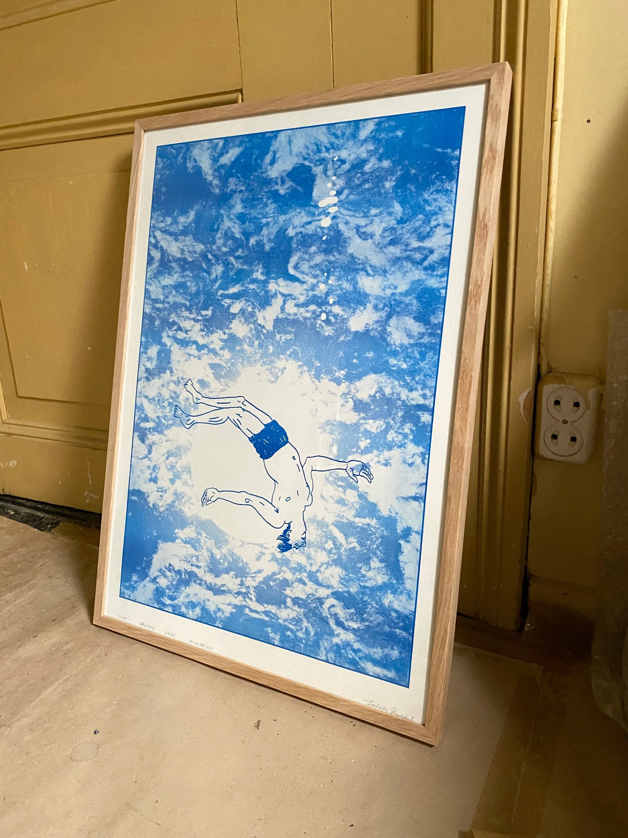 Risoprinted motif from the comic Cramp in colour Medium Blue. Sold without frame.